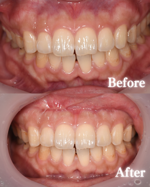 大幅にガミースマイルが改善しているのが分かります。このAfterのお写真は術後1ヶ月後に撮影しております。まだ多少のツッパリ感は、残っているものの、治療結果に大変喜んで頂きました。