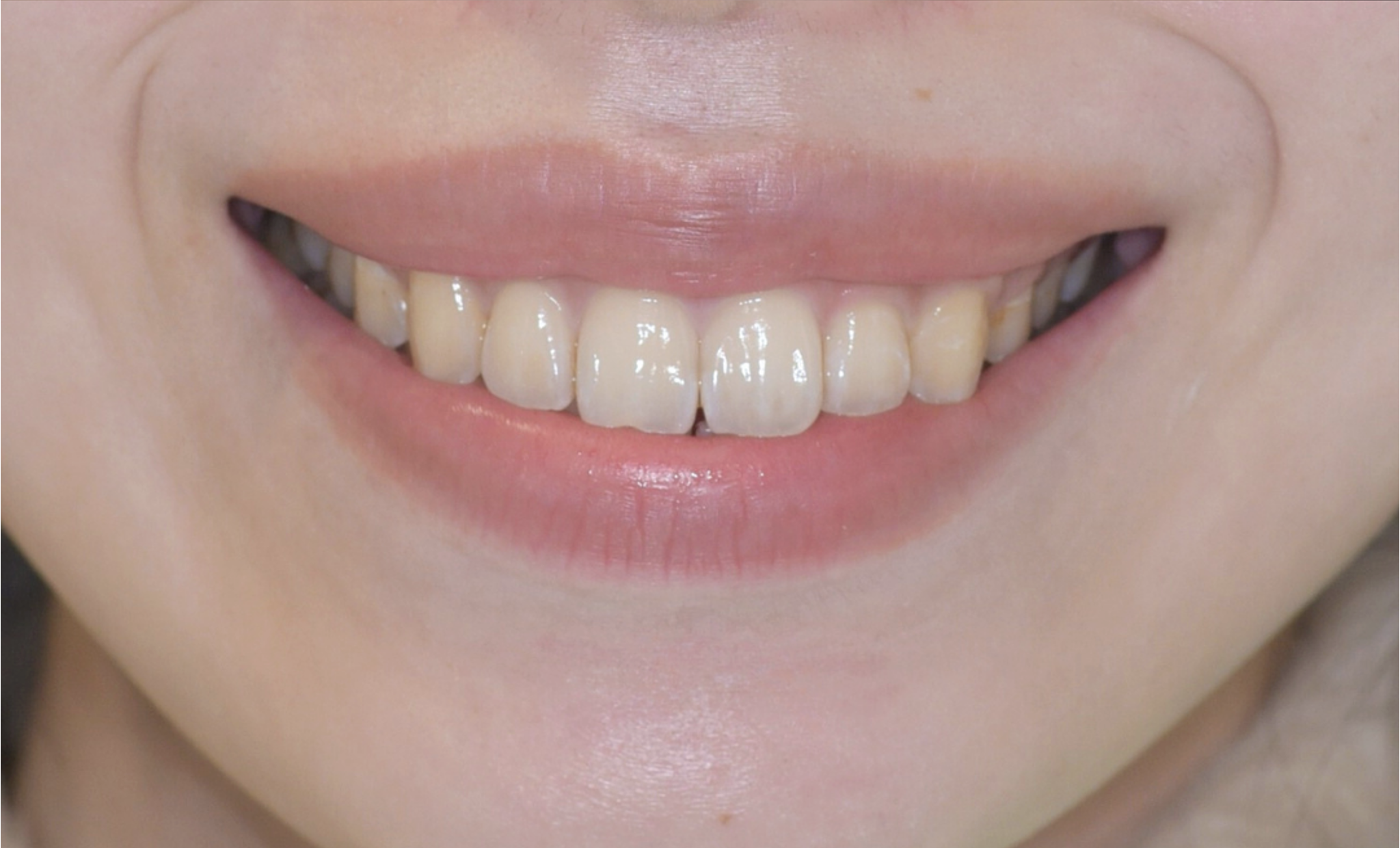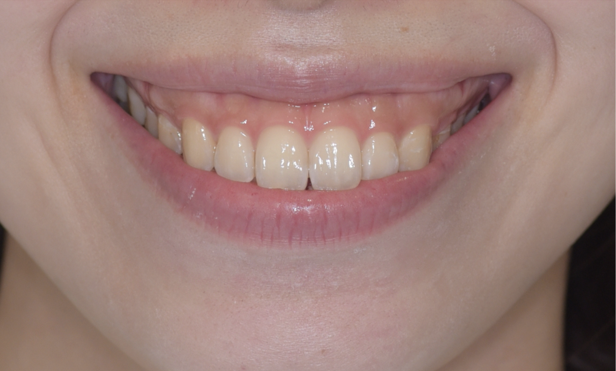 笑うと6mmほど歯茎が見えるガミースマイルの状態でした。前から2番目の歯が少し小さいのが分かります。