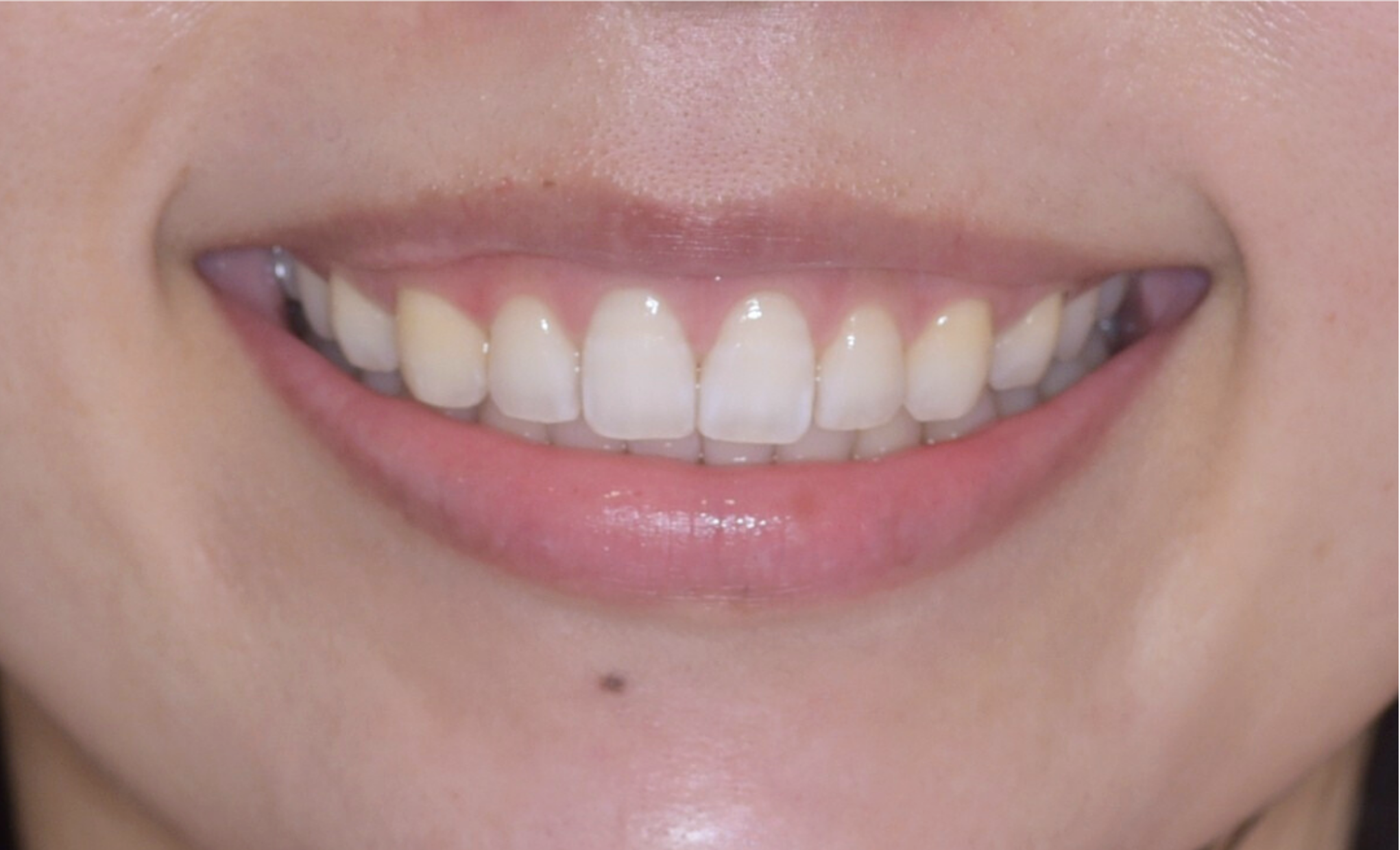 歯の形もやや四角く、「歯が小さく見える」「口元が幼い印象に見える」といった見た目の悩みにもつながっていました。