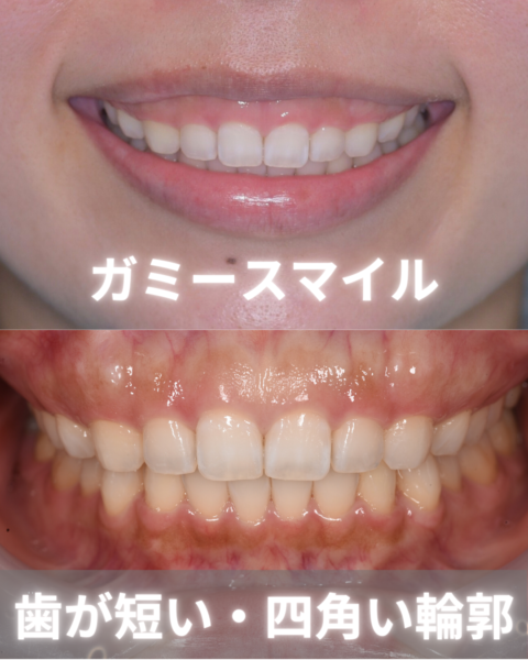 主訴 歯が短い、ガミースマイルを治したい。骨隆起も取りたい