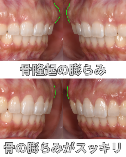 もうひとつ患者さまが気にされていたのが、笑ったときに口元横に目立つ骨隆起(骨のふくらみ)でした。