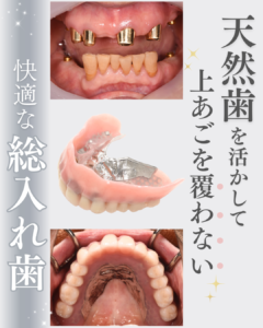 天然歯を活かして上顎を覆わない快適な総入…